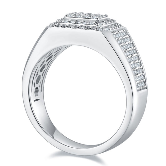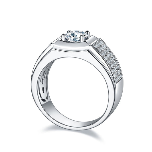Men’s Luxury Moissanite Ring Set in S925 Sterling Silver with Platinum Plating