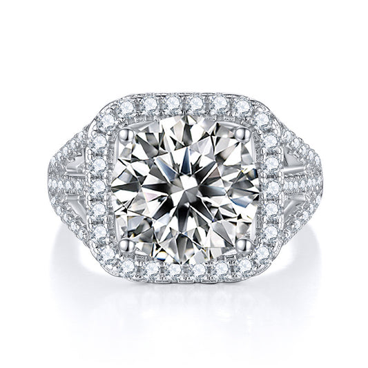 5-Carat Moissanite Ring Set Crafted in S925 Sterling Silver with Platinum Plating