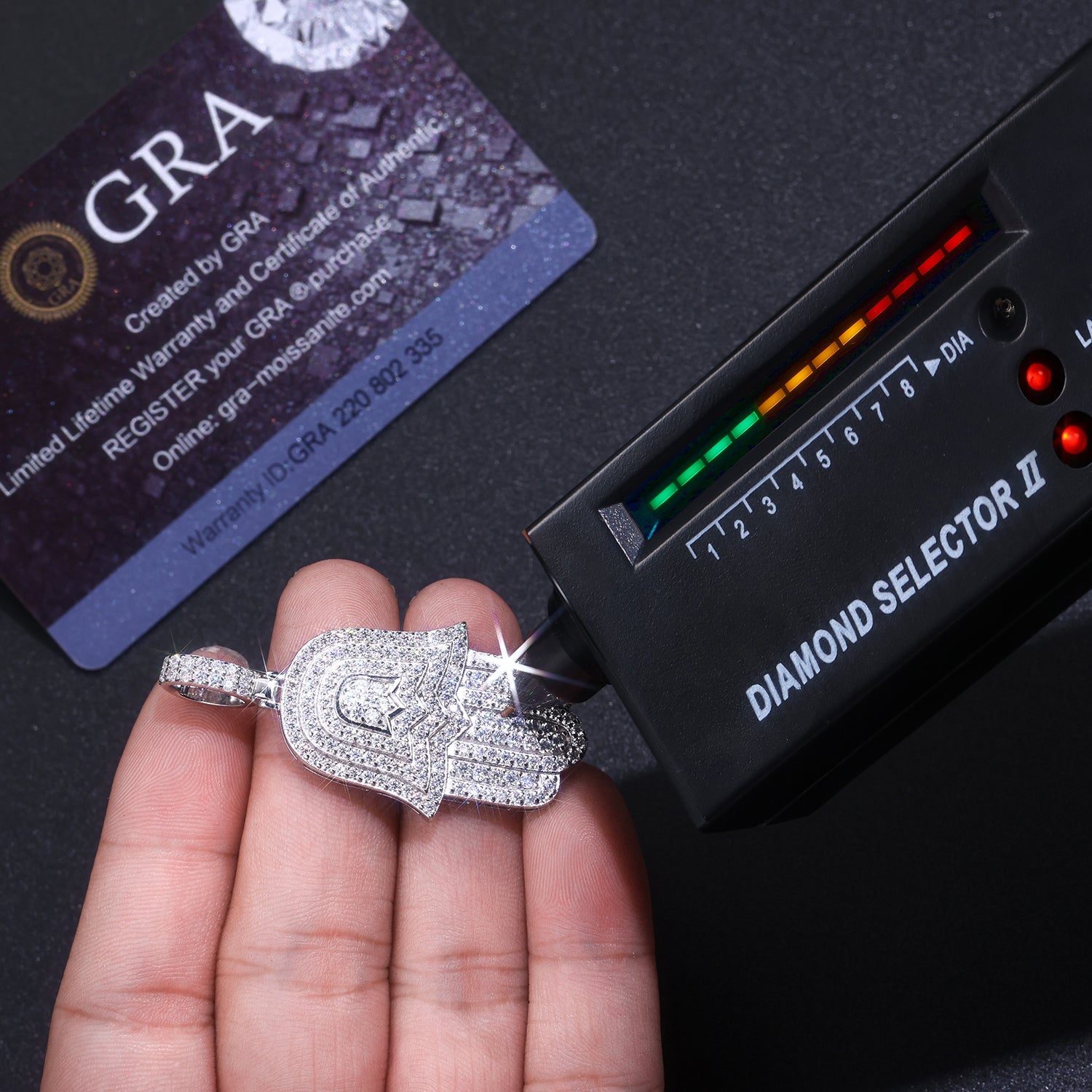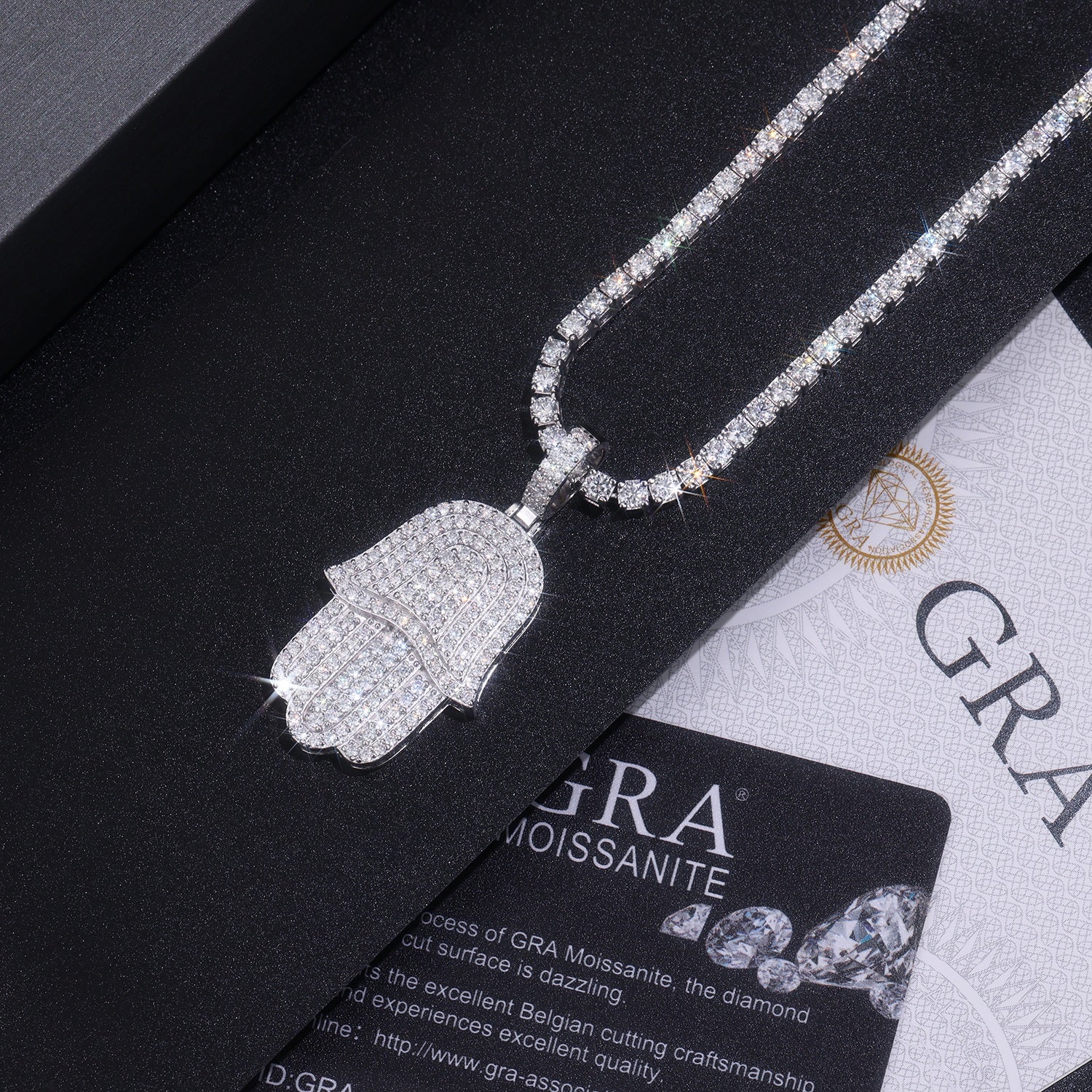 Moissanite size: less than 0.1 carat Metal material: S925 silver plated with platinum Length: No chain Weight: 9.2 grams Packaging: Gift box packaging Certificate: GRA certificate